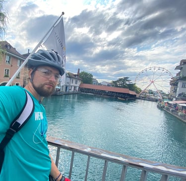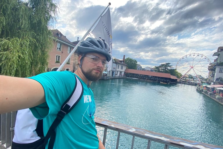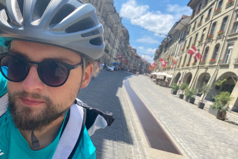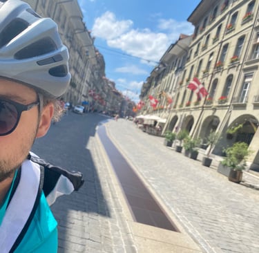 After Basel, the road curved into Bern, the charming Swiss capital. Unlike Zurich’s financial buzz, Bern feels slower, medieval, and cozy. Its UNESCO-protected old town, with its arcaded streets and iconic Zytglogge clock tower, feels straight out of a fairy tale. Fun fact: Albert Einstein lived in Bern when he developed his theory of relativity. The city is also remarkably green—pedestrian-friendly and committed to sustainability. Public transport day passes cost around €8–10, but for cyclists, the magic lies just outside: the rolling hills whispering that the Alps are near.