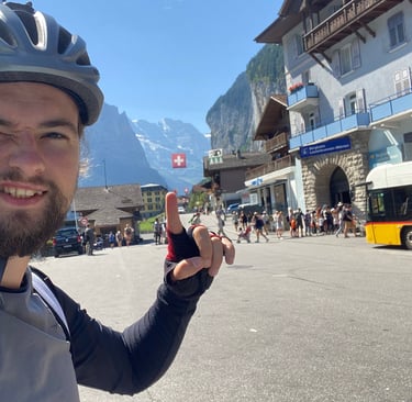 Pedaling into Lauterbrunnen felt like entering a fantasy. Surrounded by 72 waterfalls and towering cliffs, this valley is often called the most beautiful in Switzerland. The uphill ride was brutal, but the reward was staggering views and charming Swiss chalets untouched by time. The next stop, Grindelwald, was equally stunning, with glaciers looming above and hiking paths stretching endlessly. Here, a simple grocery trip reminded me of Switzerland’s infamous prices: €2.50 for a bar of chocolate, €3.50 for bottled water, €7–8 for bread and cheese. Still, far cheaper than dining out.