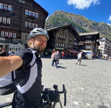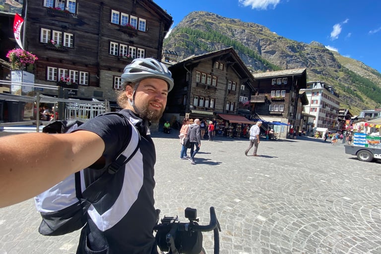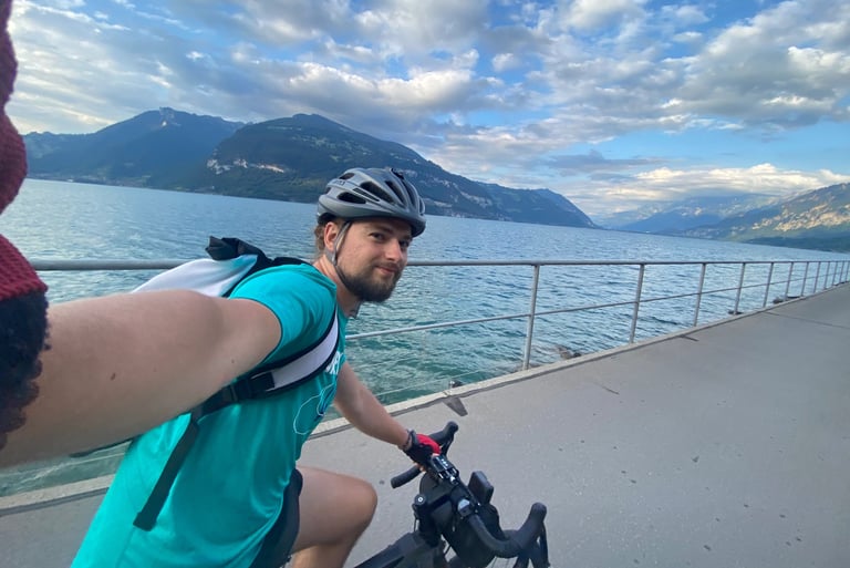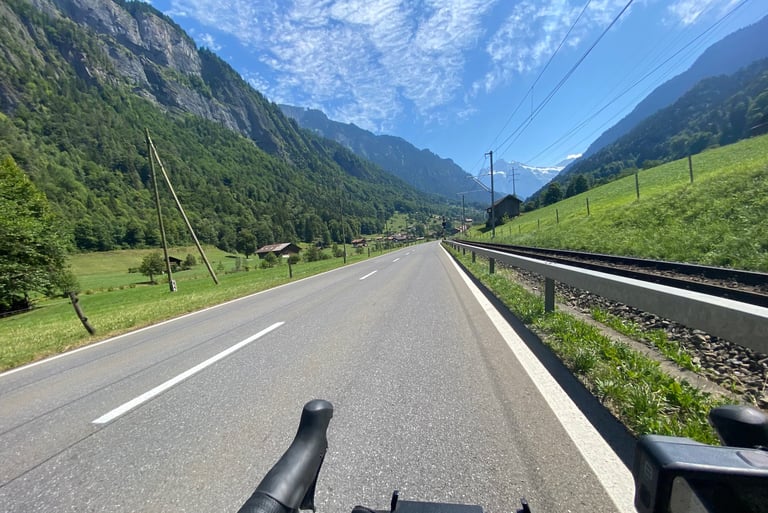 The crown jewel of the ride was Grimselpass, a legendary Swiss mountain pass at over 2,100 meters. Cyclists without heavy bags flew by like butterflies, while I grinded my way up, lungs burning and legs screaming. Instead of alpine air, exhaust fumes from cars and motorbikes filled the road, but reaching the summit made it all worth it. The descent? Pure joy—hairpin turns, wind in the face, the Alps unfolding below.